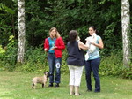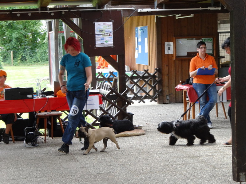 Im Ring hatte ich einen ganz netten Richter, der mir wieder so ne V1 gab. Man wenn mir mal einer ne Wurst geben würde, würde ich mich mehr freuen, aber Herrchen scheint es immer glücklich zu machen, also dann gönn ich ihm das. Übrigens war das mein 10. V1 in Folge.