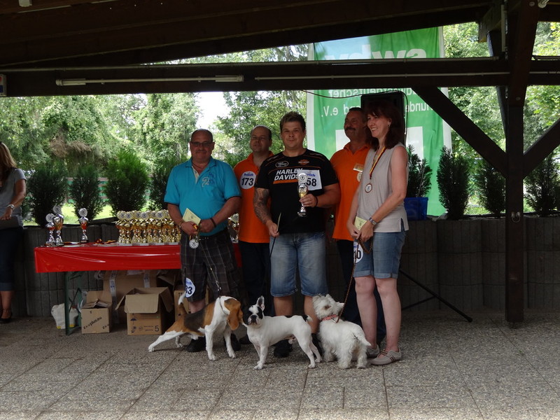 Dank dieser V1 kam ich dann in den Ehrenring mit allen V1 unter 45 cm und ich wurde erster Best of Class. Herrchen wieder ganz aus dem Häuschen. Hammer ich muss nix machen ausser ein bissel im Kreis laufen und Herrchen freut sich wie verrückt....MENSCHEN....