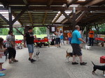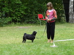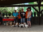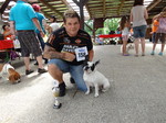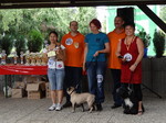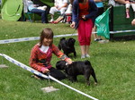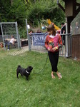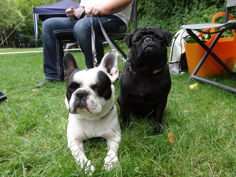 Zum Schluss kam echt noch was cooles, es gab eine Hunderennen. Herrchen und Frauchen kamen mit ihrer Geheimwaffe...EIN BALL... So ein Ball müsst ihr wissen, knipst bei mir sämtliche Lampen an und ich will ihn nur noch fangen und töten. Dank dem Ball und Frauchen die sich zum Affen am Ziel gemacht hat, habe ich den zweiten Platz in 4,62 belegt. Harley hat mit 4,96 etwas abgeloost, aber Leckerlies und Frauchens Lob bekam sie trotzdem. Denn sie meinte, sie hatte starke Konkurrenz und für nen Mops war sie echt schnell.